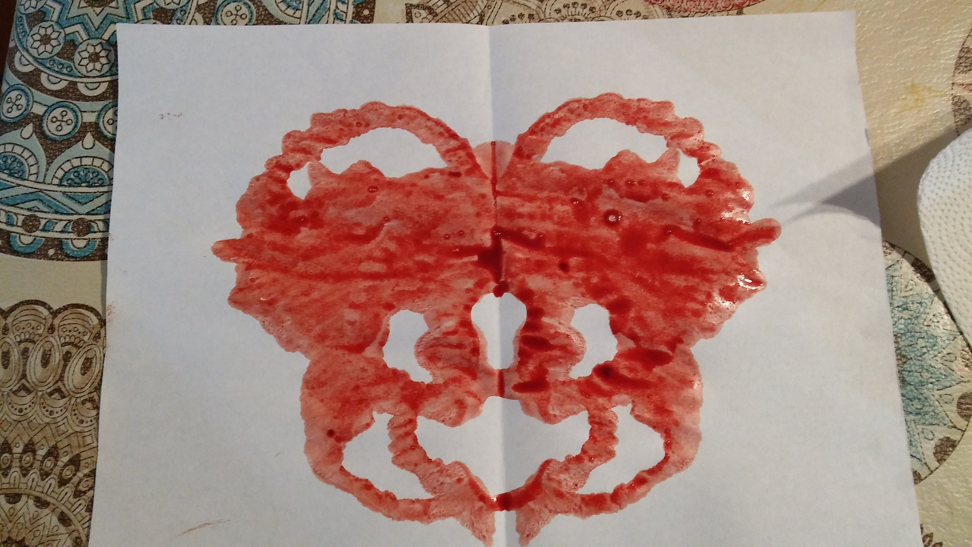 Cuando lo sentimos comenzamos a volcar la sangre entre nuestros dedos, dejando que caiga sobre el papel libremente. Veremos pequeñas gotas que caen, otras más grandes... Cuando sea suficiente (lo sentirás) dejás el frasco. Limpias tus manos y con ambas manos tomás el papel para comenzar a moverlo lentamente dejando que las gotas se deslicen muy suavemente de un lado a otro, en la dirección que las guies. No pienses, sentí.